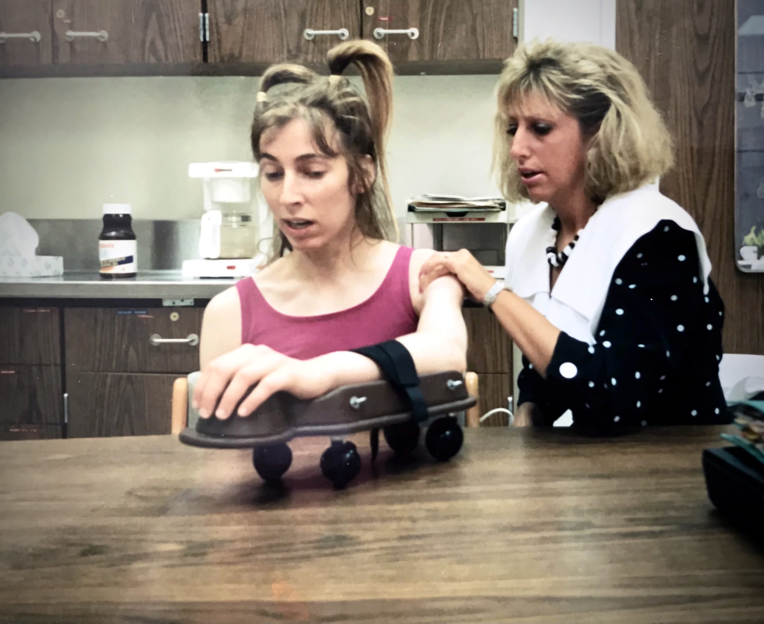 “Yes. It’s part of the pattern from the brain injury,” Pam explained. “The reflexes in your body want to pull in and curl up in a fetal position. We want to prevent that. Now, extend it straight out.” I tensed my muscles and felt sweat pop in my right armpit. My left arm ignored me.